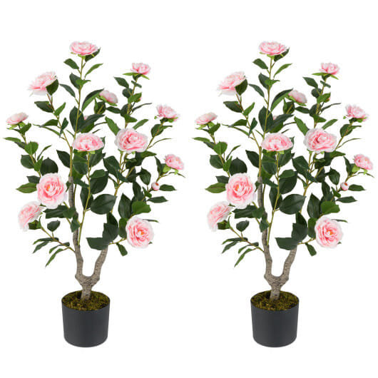 36 Inch Artificial Camellia Tree with Blooming Flower 2 Pack-Pink – Color: Pink