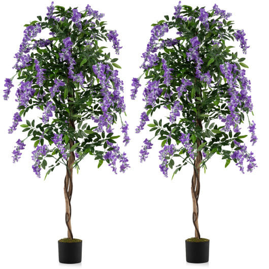 Set of 2 Fake Ficus Plant 6 FT Artificial Wisteria Tree with Natural Trunks and Purple Lifelike Flowers – Color: Purple – Size: Set of 2