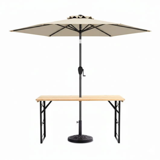 3-Piece Patio Picnic Table Set: Adjustable Wooden Picnic Table + Umbrella + Umbrella Base