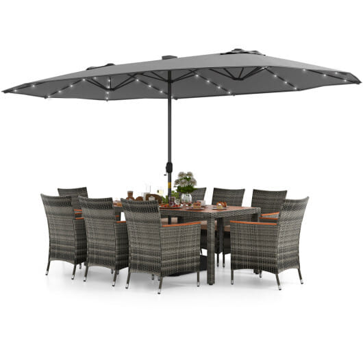 ● Offer large shade thanks to the 15 ft double-sided patio umbrella