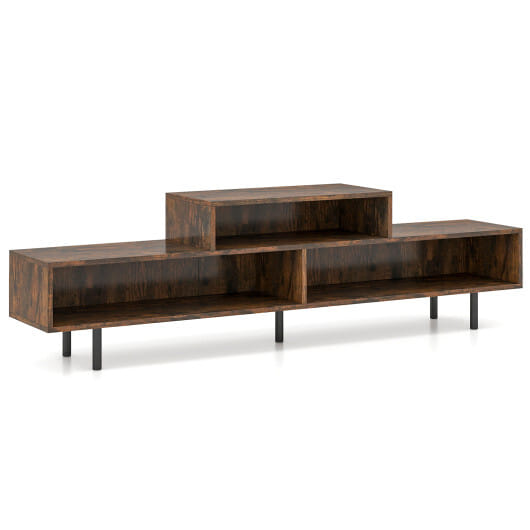 3 Cubby TV Stand for TVs up to 70 Inch with Open Storage Compartments-Rustic Brown – Color: Rustic Brown