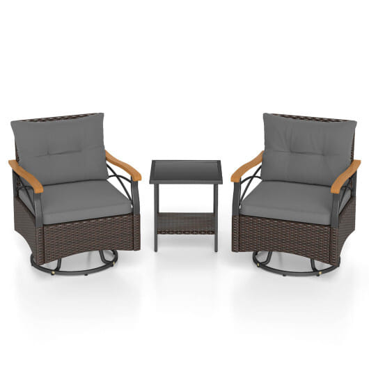 3 Piece Outdoor Swivel Chair Set with Tempered Glass Side Table-Gray – Color: Gray