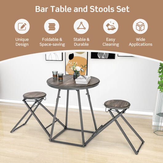 Modern table and stools set brings a charming and unique style to your space. These stools are connected to the round table and can be easily folded and stored under the table. This unique design not only makes it more decorative but also saves your space. Made from high-quality MDF panels and sturdy steel this dining table and chair set is super sturdy and durable and the square table base and X-shaped structure of stools also provide stability. Besides the anti-slip foot pads of stools and adjustable feet of the table protect the floor from scratches. This 3-piece round table set has wide applications and is perfect for the apartment cafe restaurant etc.