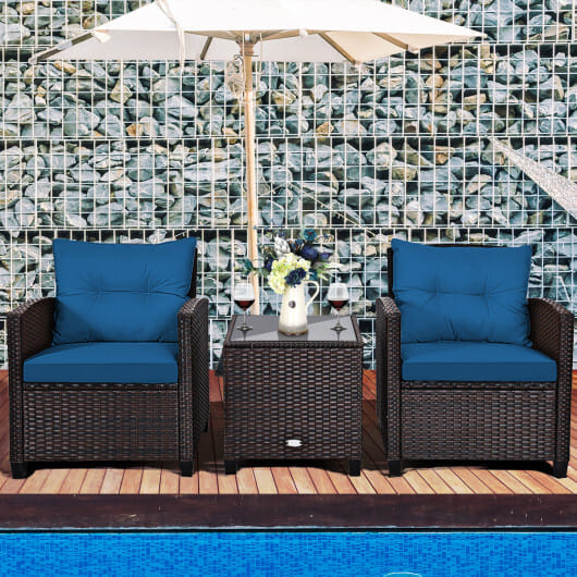 3 Pieces Rattan Patio Furniture Set with Washable Cushion-Peacock Blue – Color: Peacock Blue