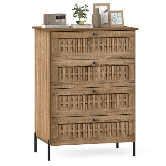 ● Wood grain finish with stylish rattan-textured drawer fronts for more elegance