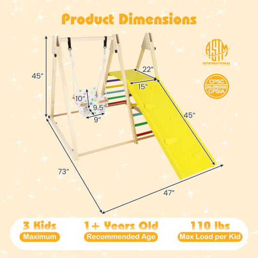 ● Baby swing resting platform climbing ramp and ladder as 4-in-1 versatility