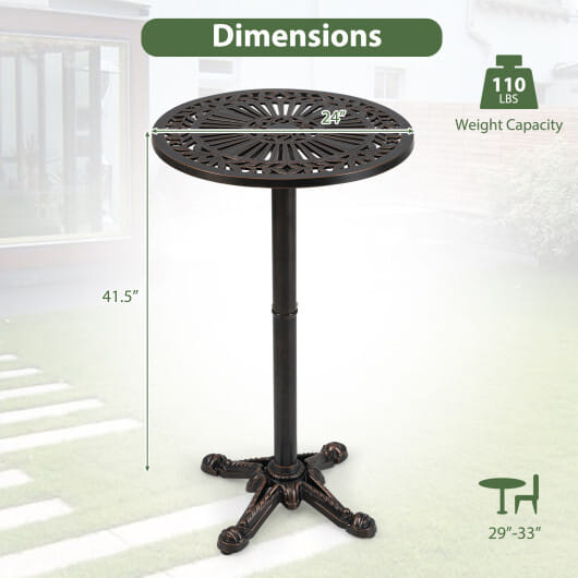 ● Cast aluminum patio bar table is rust-resistant and weather-resistant
