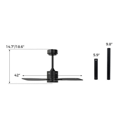 ● The fan’s 42″ blade span fits rooms from 8 x 8 to 13 x 13 feet