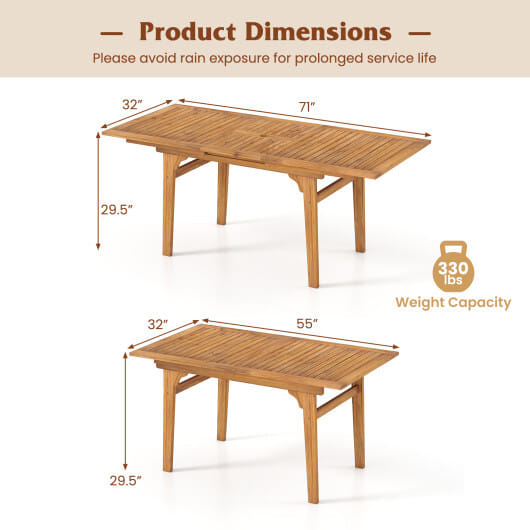 ● Comfortably seat 6-8 people with a 55″-71″ expandable design