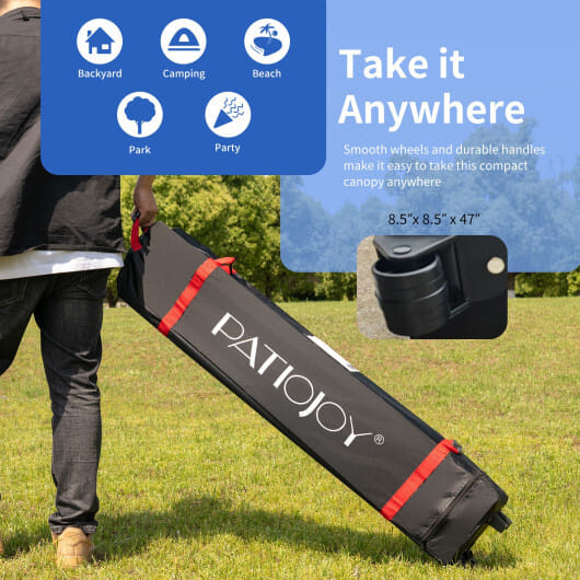 - ● Commercial grade canopy tent provides 6.6′ x 6.6′ large shade