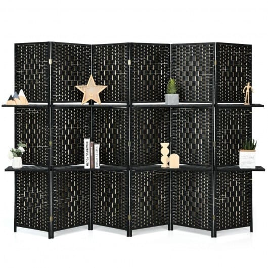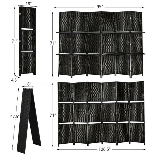 This 6 panel room divider will bring your home natural and elegant sense and can match any styles. With the two shelves equipped it allows you to place exquisite decors and beautify your room. You can easily separate your room and get your personal space. The hand-woven fiber pattern can take your room to the next level while also features great durability for long-term use. When not in use you can fold it into a compact size for easy storage and saving space. Definitely it will be a necessary addition to your home.