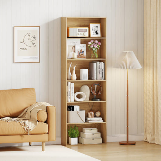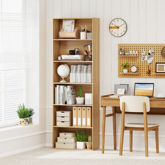 ● Each shelf keeps books photos storage boxes and ornaments in order
