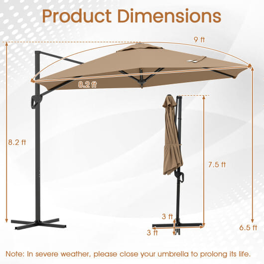 Be the first to review “9 FT Cantilever Patio Umbrella with Vented Top and Sun-Protective Canopy-Brown – Color: Brown”