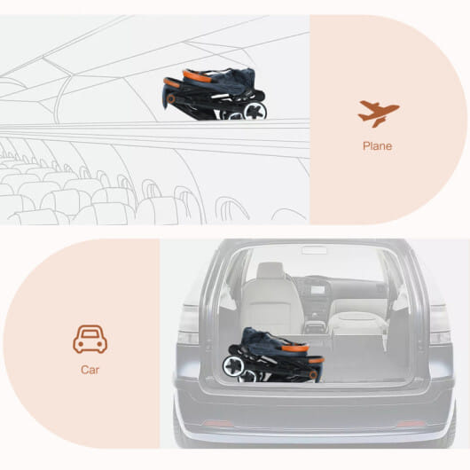 ● Hidden pulling rod for pulling the stroller easily after it is folded