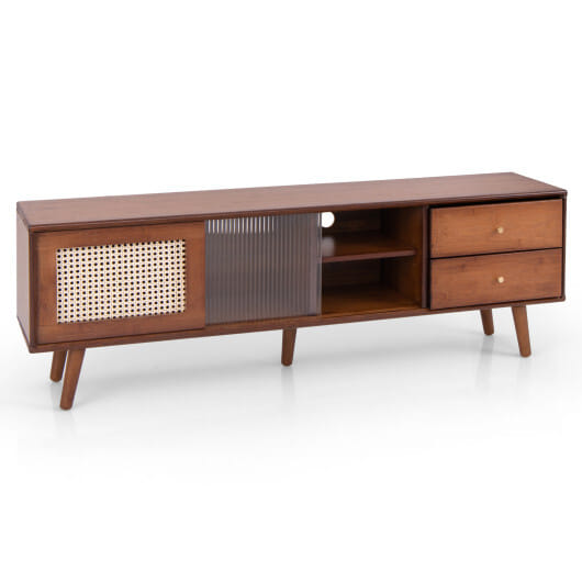 Bamboo TV Stand for TV up to 65 Inch-Brown – Color: Brown