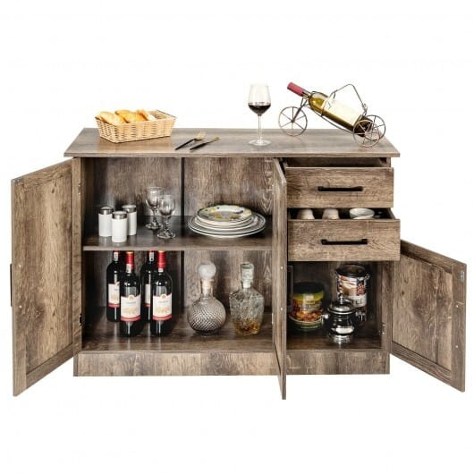● The wide top 2 drawers and 2 side cabinets offer sufficient storage space