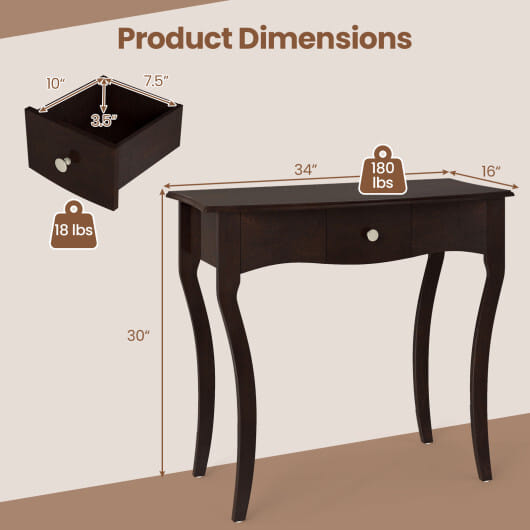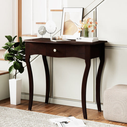 Console Table with Drawer and Solid Wood Frame-Espresso – Color: Espresso