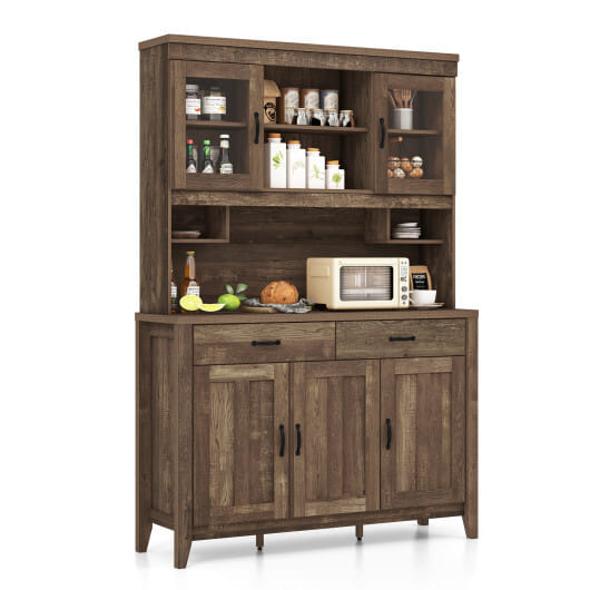 Kitchen Freestanding Hutch Cabinet with Microwave Countertop-Brown – Color: Brown