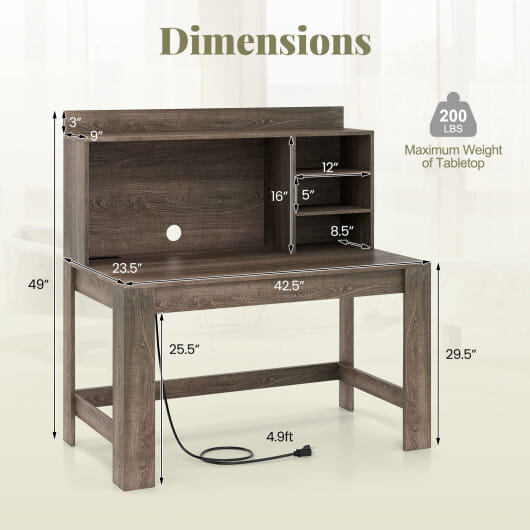 ● 23.5″ wide desktop and 3 storage shelves for ample working space