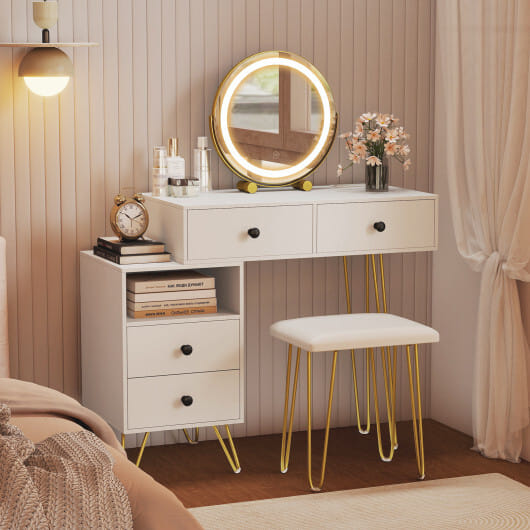 Modern Dressing Table with Storage Cabinet-Off white – Color: Off White