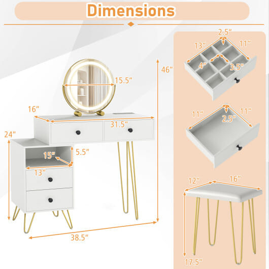 ● 2 drawers and 1 side cabinet provide large space to store makeup accessories