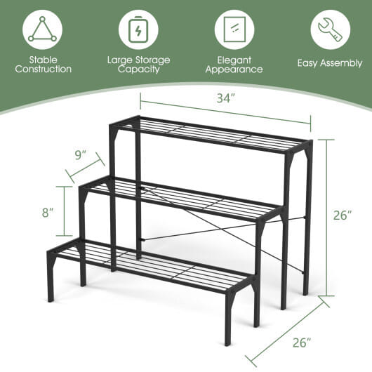 Outdoor 3 Tier Metal Plant Stand with Heavy Duty Rack for Multiple Use – Color: Black