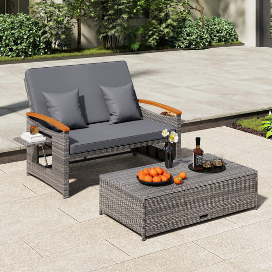 Outdoor Wicker Daybed with Folding Panels and Storage Ottoman-Mix Gray – Color: Mix Grey-grey