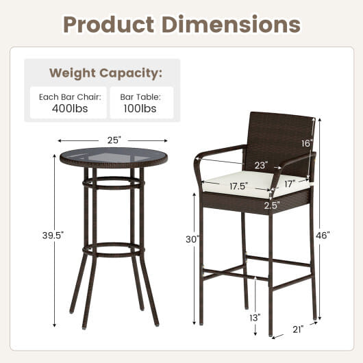 ● Heavy-duty metal frame for 400 lbs max load of each barstool