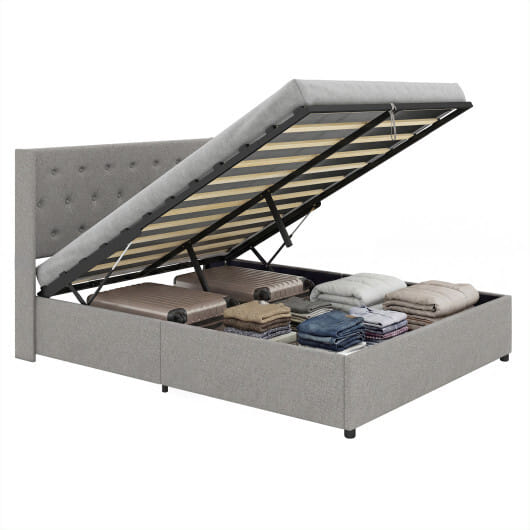 ● Comfy upholstered wingback headboard features exquisite tufted design