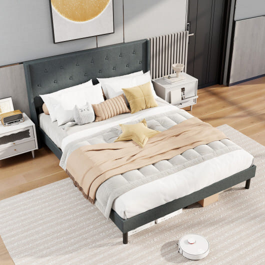 ● Upholstered wingback headboard combines style and practicality into one