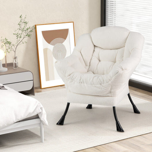 Sherpa Upholstered? Accent Chair? with Cozy Head Pillow-Beige – Color: Beige