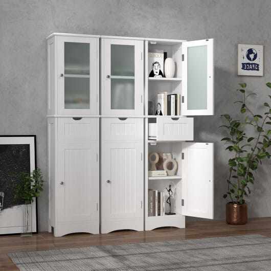 ● Inside storage shelves are adjustable in 3 heights